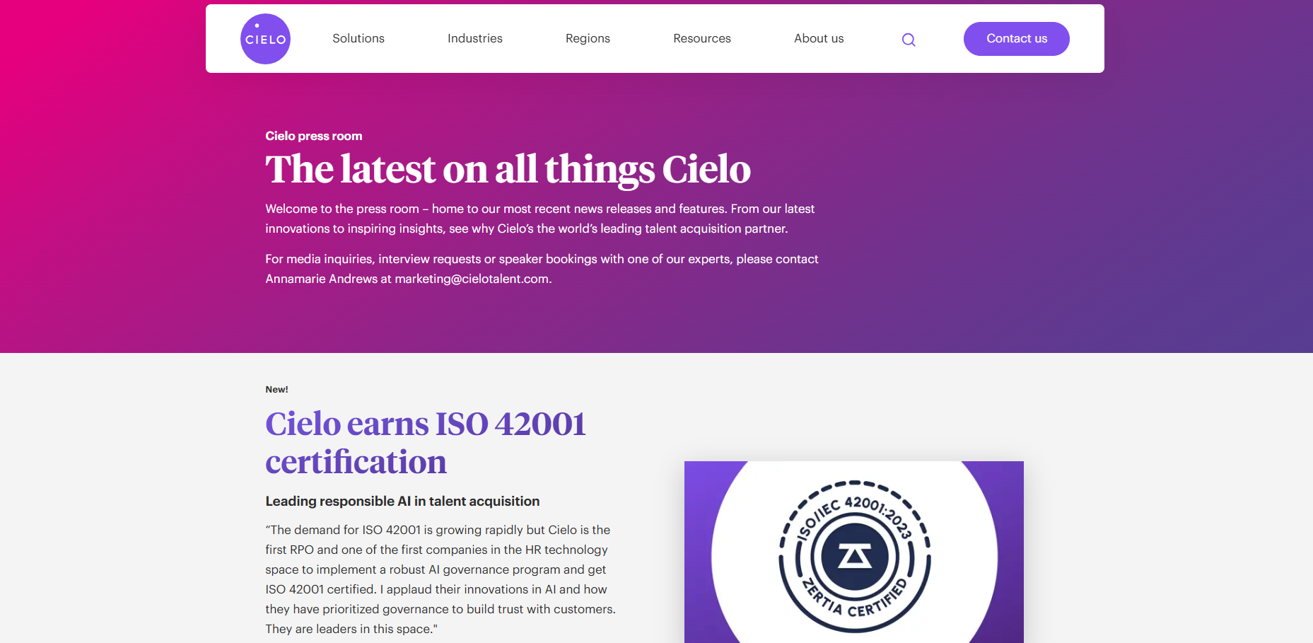 Click here to visit Cielo’s press room page, shown above.